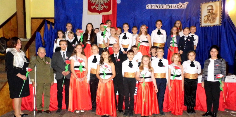 Po wprowadzeniu Pocztów Sztandarowych i odśpiewaniu hymnu szkolnego zebrani mogli obejrzeć cześć artystyczną przygotowaną pod kierunkiem pań: Anny Zawiślak, Magdaleny Grabowskiej i Agnieszki Miedzińskiej. Informacje historyczne zostały w niej poprzeplatane patriotycznymi wierszami i piosenkami. Dodatkową atrakcją był taniec ze wstążkami wykonany przez uczniów klasy II i III. Główną rolę odegrała w nim Ojczyzna – Polska (Wiktoria Grabowska) oraz Józef Piłsudski (Bartosz Ratajczyk). Na koniec występu uczniowie klasy V i VII w przepięknych strojach zatańczyli poloneza.