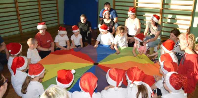 Przyszli tłumnie i chętnie wzięli udział w zajęciach ruchowych. Ich zaangażowanie we wspólną pracę z dziećmi zaowocowało jeszcze pełniejszym poznaniem się i integracją. Zabawa dostarczyła wszystkim wiele frajdy. Po tak aktywnie spędzonej lekcji przyszła pora na słodki poczęstunek i mikołajkowe podarki. Wspólne przedsięwzięcie dostarczyło wszystkim niezapomnianych wrażeń, które z pewnością zostawią dobre wspomnienia w pamięci uczestników. To był mile spędzony czas.