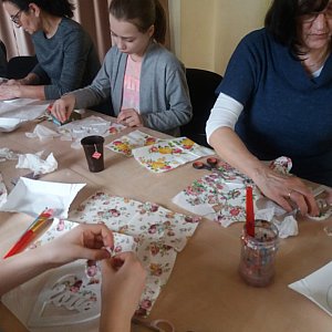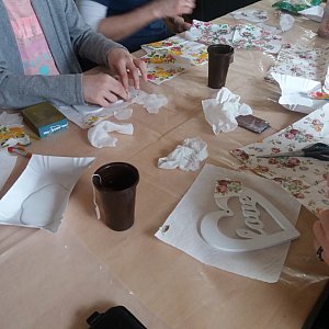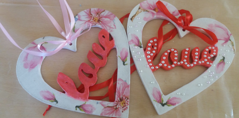 Uczestniczki wykorzystywały różne kolory farb, zdobiły techniką decoupaqe i perełkami. Prace wyszły przepięknie, a serca trafią do domów zakochanych.