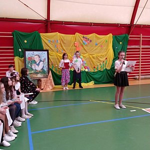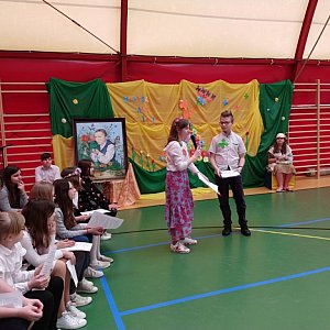 Jesteśmy dumni, że nasza szkoła nosi imię tej wybitnej postaci, całkowicie oddanej dzieciom. Jest dla każdego z nas wzorem pracowitości, wytrwałości w dążeniu do celu i realizacji swoich marzeń, a także inspiracją do rozwijania talentów. Dla społeczności szkolnej został przygotowany pokaz mody. Stroje zaprojektowała słynna projektantka Coco Szaaalona. Każdy mógł znaleźć coś dla siebie. Był pokaz mody uczniowskiej, belferskiej, rodzinnej, historycznej, zawodowej, sportowej, a także mody na szczególne okazje – ślub. Projektantka spisała się znakomicie. Jesteśmy gotowi na składanie zamówień. Gdy pokaz dobiegał końca, nagle i nieoczekiwanie wpadła do nas prawdziwa, piękna i roześmiana Pani Wiosna. Publiczność przywitała Ją gromkimi brawami i radosnymi okrzykami. Całości towarzyszył śpiew w wykonaniu naszego szkolnego zespołu „Wesołe Nutki”.