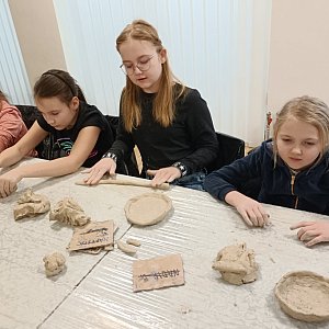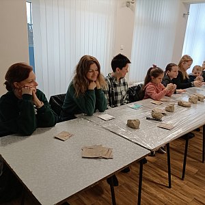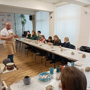 Podczas pierwszego spotkania 10 lutego 2023 roku uczestnicy mogli spróbować swoich sił w formowaniu gliny. Każdy uformował ręcznie naczynie własnego projektu z gliny, która pochodzi z Bolesławieckich Zakładów Materiałów Ogniotrwałych i jak zapewniał nasz gość, jest surowcem najwyższej jakości. Każdy uczestnik warsztatów mógł również z pomocą prowadzącego warsztaty Łukasza Dzieciątkowskiego wytoczyć na kole garncarskim jedną z zaproponowanych form: dzbanuszek, kubeczek, miseczkę lub skarbonkę. Wykonane podczas warsztatów naczynia zostały następnie wysuszone i wypalone w piecu ceramicznym w Pracowni Garncarskiej, w której pracuje gość ŻDK.