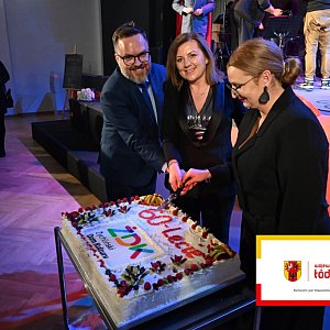 Głos zabierali również Goście. P Grzegorz Ambroziak, Burmistrz Gminy Żychlin zauważył, że Żychliński Dom Kultury na stałe wpisał się żychliński krajobraz, a dla wielu osób, pracowników, ale i odbiorców stał się drugim domem, a on sam czuje się dumny, że instytucja dzięki wsparciu Gminy rozwija się i zmienia, stając się coraz bardziej nowoczesną placówką. Z kolei p. Agnieszka Sidwa, Przewodnicząca Rady Miejskiej w Żychlinie przekazała życzenia w imieniu żychlińskiego samorządu: „niech ten piękny jubileusz będzie inspiracją do dalszych działań,a kolejne lata przyniosą jeszcze więcej sukcesów, twórczych inicjatyw i radości płynącejz kształtowania życia kulturalnego naszej gminy”.