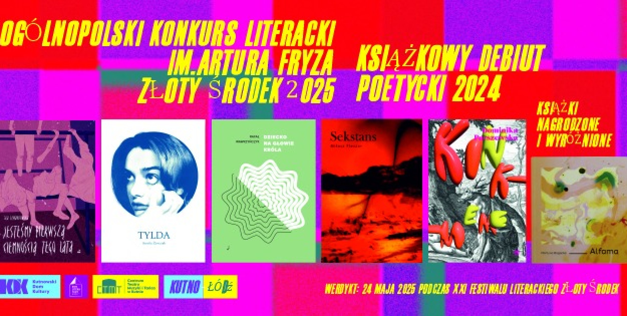 W tym roku, po dwudziestu latach ogólnopolski konkurs i festiwal poezji w Kutnie przechodzi metamorfozę. Zmiana goni zmianę. Dziś poznaliśmy sześć książek debiutów literackich nagrodzonych i wyróżnionych w XXI Ogólnopolskim Konkursie im. Artura Fryza Złoty Środek. Nowy skład jury, tym razem żeński Joanna Mueller, Julia Szychowiak i Agnieszka Waligóra ogłosi werdykt 24 maja podczas XXI Festiwalu Literackiego Złoty Środek.