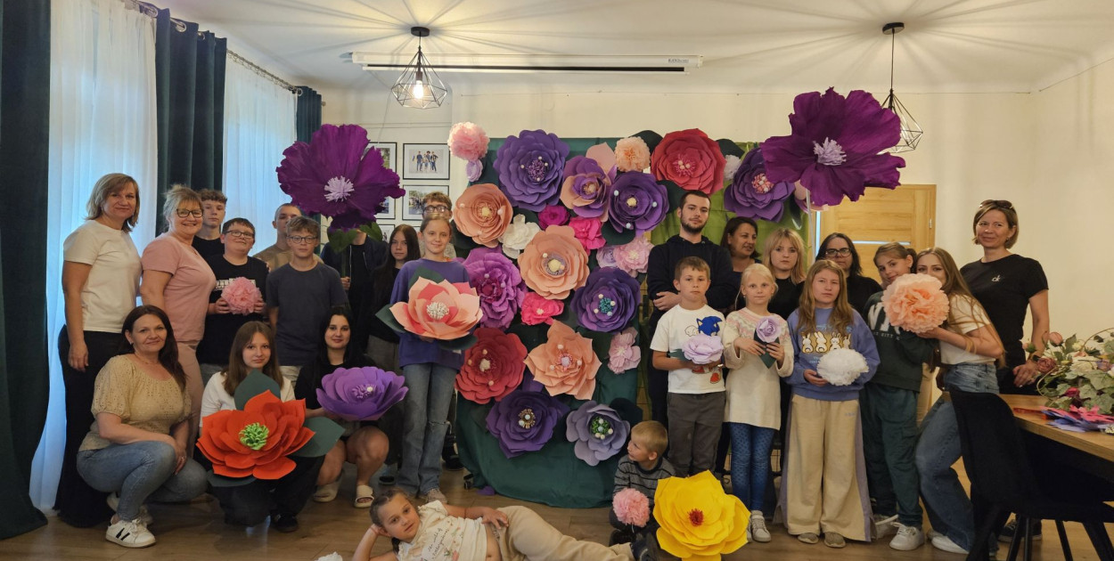 "Ogród na ścianie" to warsztat papieroplastyczny, w ramach którego dzieci i młodzież miały okazję poznać nową technikę tworzenia papierowych kwiatów. Papieroplastyka to technika tworzenia przedmiotów dekoracyjnych i użytkowych. Obejmuje swoim zakresem wiele technik, takich jak wycinanie, składanie (origami), przyklejanie (decoupage) i tworzenie modeli przestrzennych. Warsztaty miały na celu rozwój zainteresowań i umiejętności plastycznych oraz uwrażliwienie dzieci na estetykę. Uczestników wspierała gościnnie Pani Aleksandra Fabiniak - Kurowska, której organizatorzy serdecznie dziękują.
