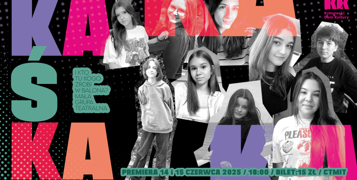 W najbliższy weekend 14 i 15 czerwca o godz. 18.00 w Centrum Teatru Muzyki i Tańca spektakl Małej Grupy Teatralnej Kutnowskiego Domu Kultury pt. „Kaśka". Bilet: 15 zł w kasie KDK, w biletomacie lub ONLINE