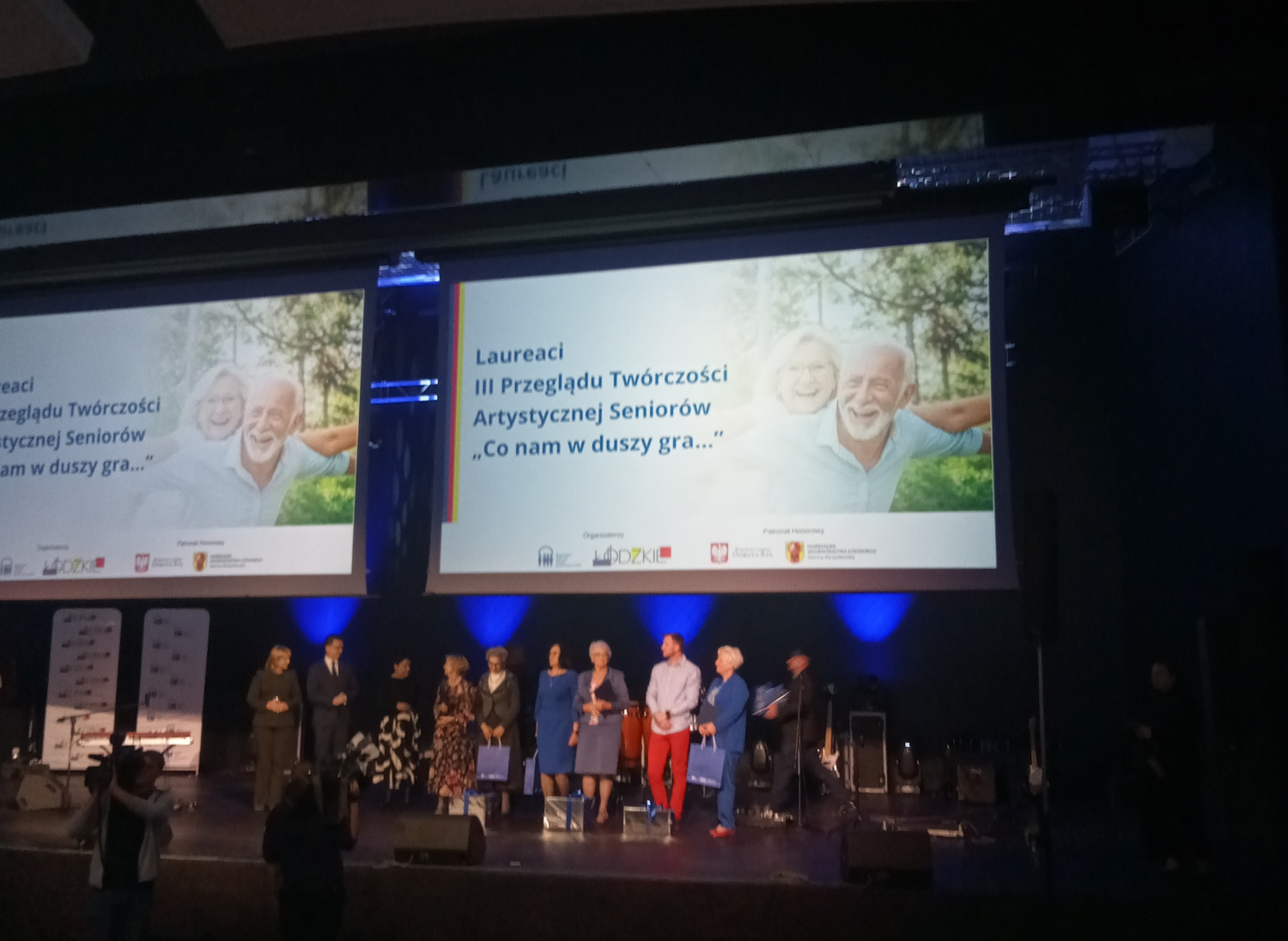 Laureatka III miejsca 3. edycji Przeglądu Twórczości Artystycznej Seniorów „Co nam w duszy gra” – Krystyna Woźniak, a także reprezentująca Stowarzyszenie Uniwersytet Trzeciego Wieku w Kutnie Elżbieta Żółtowska, uczestniczyły w miniony piątek, 26 września w Wojewódzkich Obchodach Dnia Seniora w Łodzi.