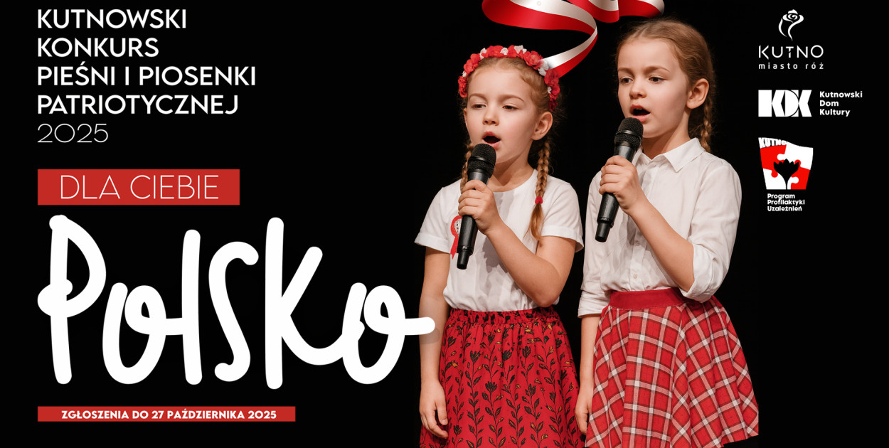 Miłość do Ojczyzny można wyśpiewać! Zapraszamy dzieci i młodzież do udziału w Kutnowskim Konkursie Pieśni i Piosenki Patriotycznej "Dla Ciebie Polsko 2025". Należy wybrać i przygotować do prezentacji jedną, polską piosenkę o charakterze patriotycznym. Aby wziąć udział w konkursie należy wypełnić formularz zgłoszeniowy i wysłać do 27 października 2025.