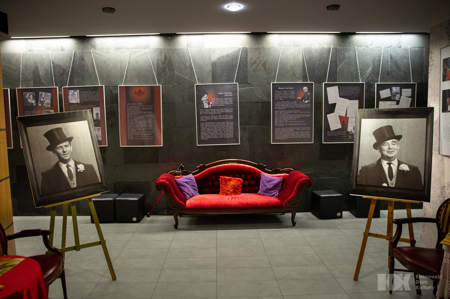 W holu Centrum Teatru Muzyki i Tańca czeka na Państwa nastrojowa wystawa poświęcona Jeremiemu Przyborze, Jerzemu Wasowskiemu i Kabaretowi Starszych Panów. Taki mamy klimat.