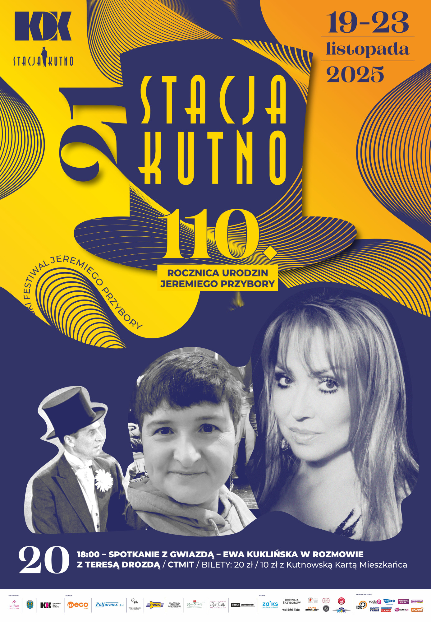 Dwa wydarzenia w ramach 21. Ogólnopolskiego Festiwalu Jeremiego Przybory "Stacja Kutno" dostępne są ze zniżką 50% na Kutnowską Kartą Mieszkańca! Zapraszamy do Centrum Teatru Muzyki i Tańca w Kutnie.