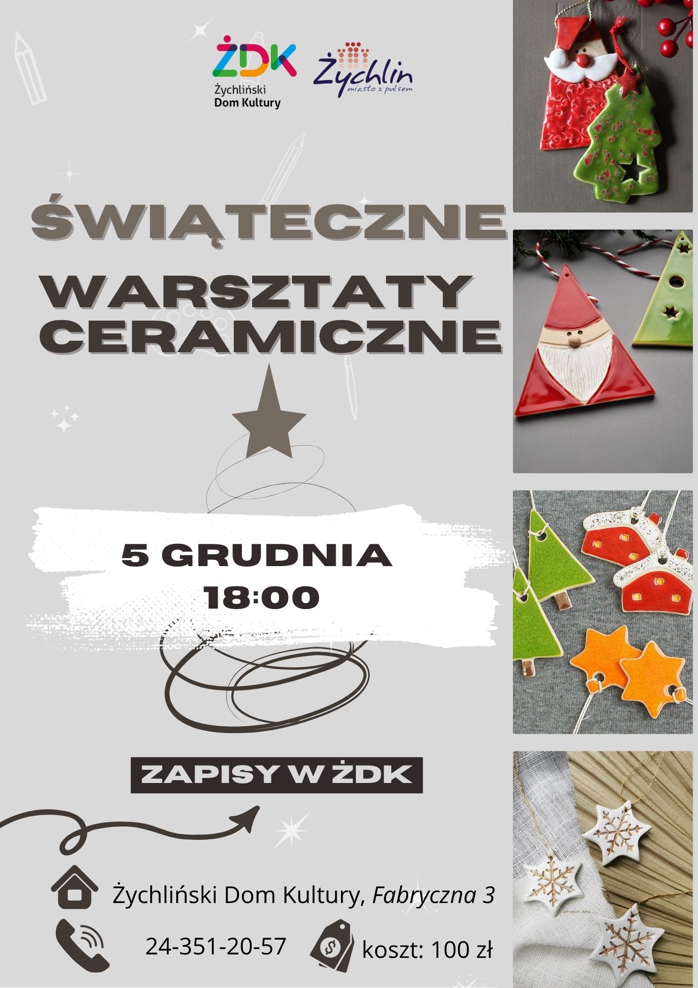 Brakuje Ci oryginalnych pomysłów na świąteczne dekoracje? Zrelaksuj się przy glinie i stwórz coś niepowtarzalnego podczas warsztatów w Żychlińskim Domu Kultury. Wrócisz z pięknymi ozdobami i świątecznym nastrojem! Świąteczne warsztaty ceramiczne 5 grudnia. Już trwają zapisy!