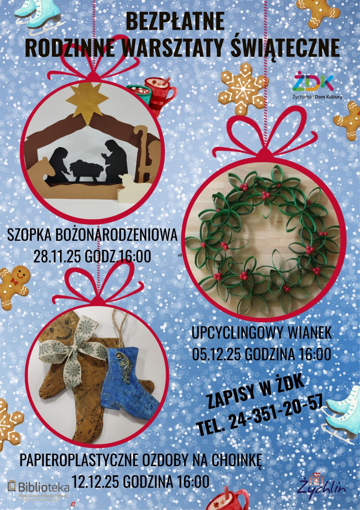 To doskonała okazja, aby spędzić czas razem, poczuć magię zbliżających się świąt i zabrać do domu własnoręcznie wykonane dekoracje.Serdecznie zapraszamy całe rodziny do Żychlińskiego Domu Kultury.