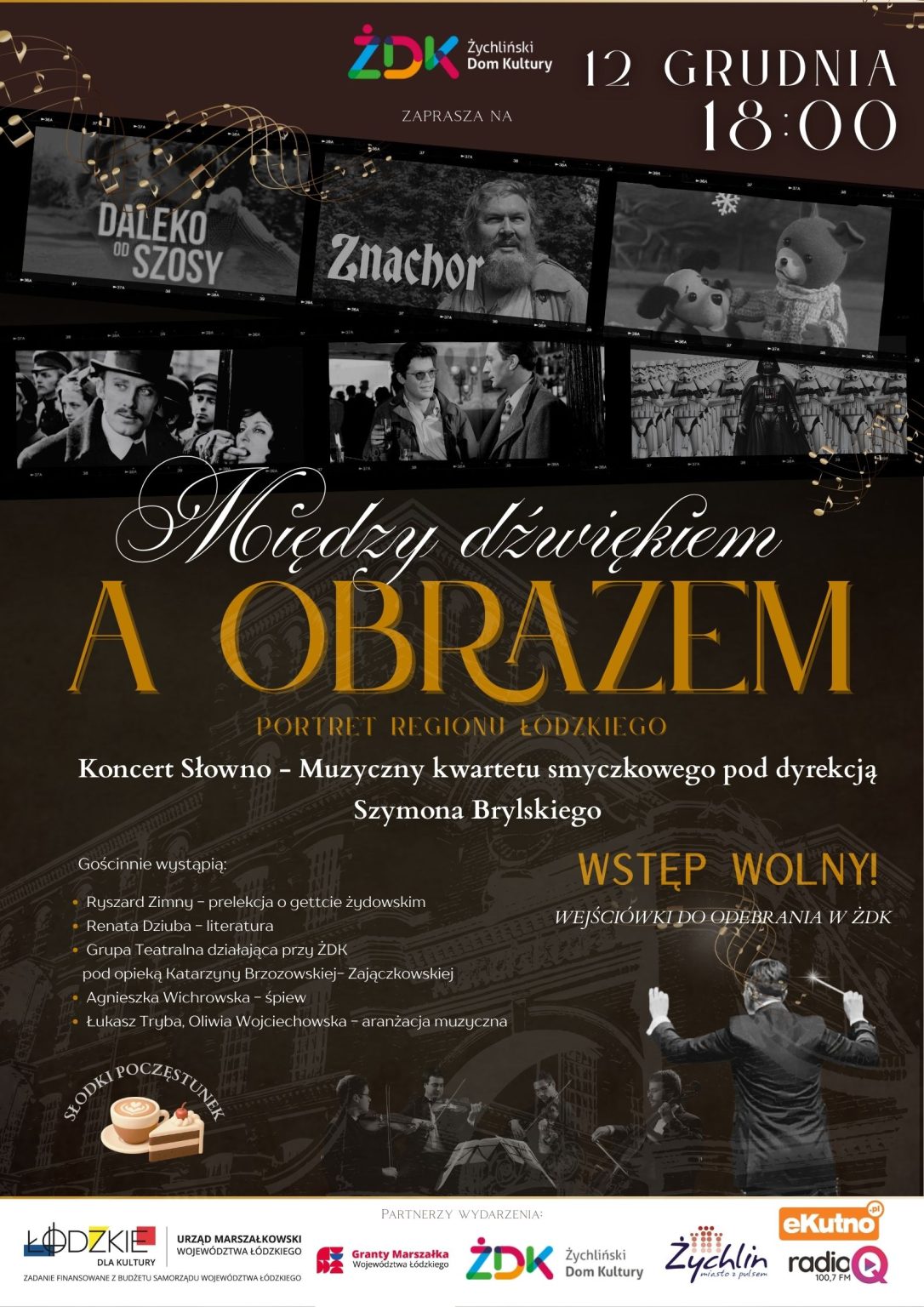 Żychliński Dom Kultury zaprasza na niezwykły, pełen emocji i historii koncert, w którym dźwięk spotka się z obrazem, a muzyka stanie się przewodnikiem po kulturze regionu łódzkiego.To wieczór, który odsłoni przed Państwem portret ludzi związanych z Łodzią i okolicami — literatów, filmowców, scenarzystów, reżyserów i muzyków, którzy tworzyli i wciąż tworzą artystyczną tkankę naszego regionu.