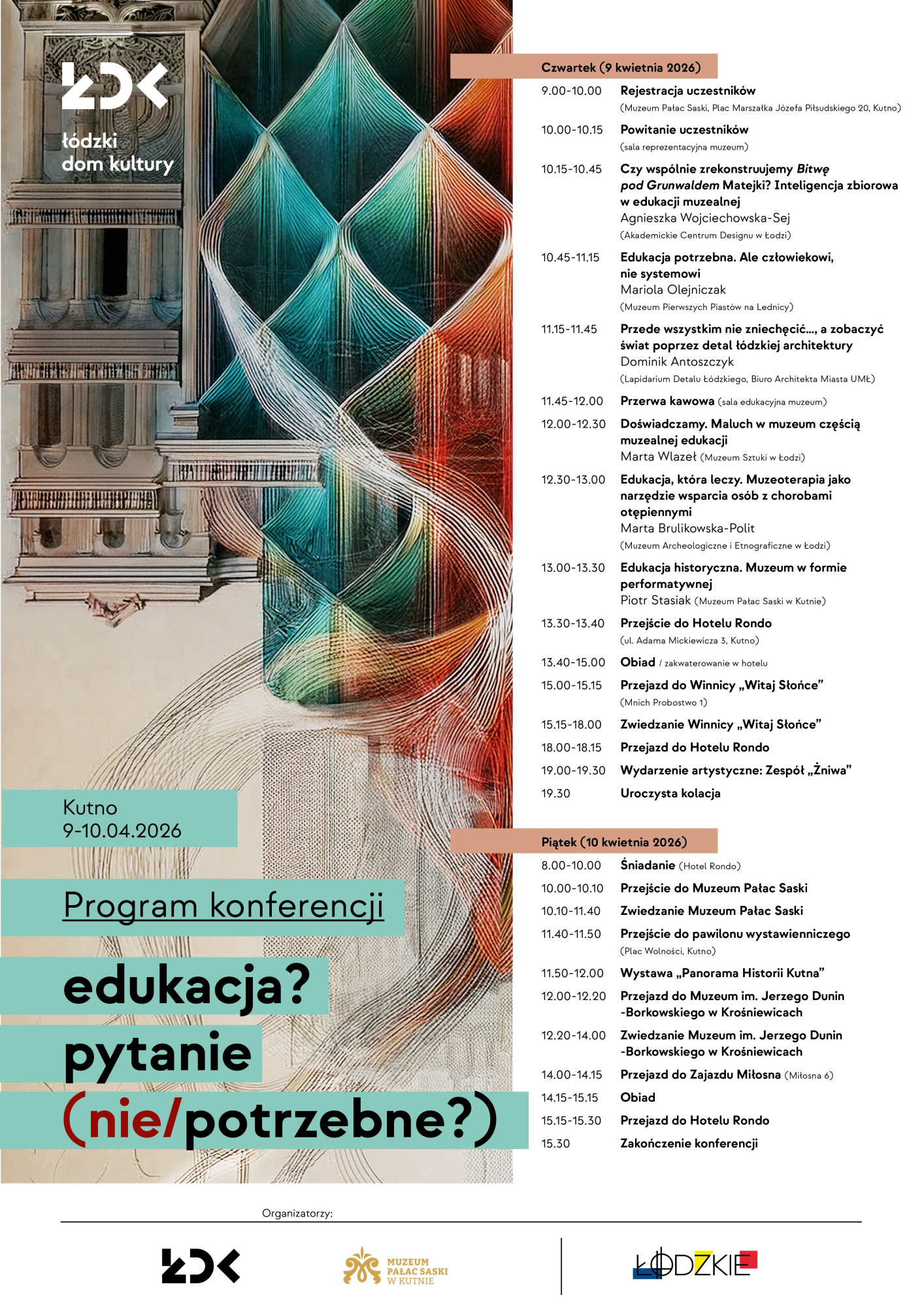 Konferencja organizowana jest przez Łódzki Dom Kultury we współpracy z Muzeum Pałacem Saskim w Kutnie.