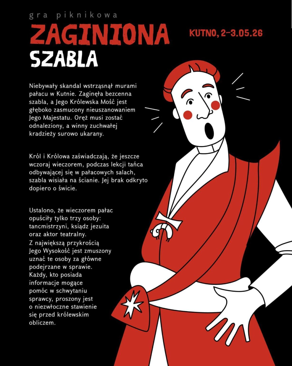 Podczas festiwalu czeka na Was mnóstwo atrakcji, a jedną z najbardziej wciągających będzie gra piknikowa z elementami detektywistycznymi „Zagubiona szabla”.