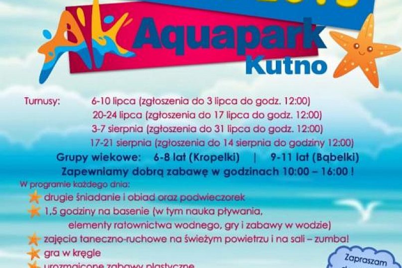 W poniedziałek, 6 lipca w Aquaparku rozpoczął się pierwszy z czterech zaplanowanych turnusów półkolonii dla dzieci w wieku od 6 -11 lat. W pierwszym turnusie uczestniczy 26 dzieci, które wypoczywają, grając w kręgle, ucząc się pływać, biorąc udział w mini zawodach sportowych i zabawach plastycznych. Aquapark zorganizował dla nich także zajęcia gimnastyczne w sali fitness. Na zakończenie turnusu w piątek, na uczestnikówczeka nie lada niespodzianka, która na razie owiana jest tajemnicą.