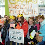 Dziś barwny korowód czytelników bibliotek szkolnych ze szkół powiatu kutnowskiego odwiedził Radę Powiatu w Kutnie. Z okazji Międzynarodowego Miesiąca Bibliotek Szkolnych uczniowie zamanifestowali swoją pozytywną postawę, wygłaszając hasła związane z czytelnictwem i wartościami, jakie niosą książki w naszym życiu. Happening Czytelniczy zorganizowała Pedagogiczna Biblioteka Wojewódzka w Łodzi - filia w Kutnie oraz Specjalny Ośrodek Szkolno-Wychowawczy nr 2 w Kutnie, a w przemarszu wzięli udział uczniowie szkół podstawowych w Łaniętach, Strzelcach i Kutnie oraz Gimnazjum nr 2 w Kutnie. Kierownik biblioteki Agnieszka Mikołajczyk oraz Jolanta Kaczmarek z SOSW wyjaśniły radnym powód happeningu pod hasłem "Biblioteki szkolne rządzą!". Głównie chodzi o promocję czytelnictwa wśród dzieci i młodzieży, zachęcanie uczniów do korzystania z zasobów bibliotek szkolnych i biblioteki pedagogicznej oraz promocję bibliotek szkolnych w środowisku lokalnym. Nie zabrakło haseł o wsparciu bibliotek o środki na zakup nowości.