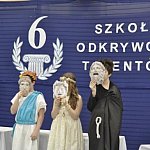 Wczoraj, już po raz trzeci w Szkole Podstawowej nr 6 zorganizowano „Dzień Odkrywców Talentów”. Uczniowie klas IV- VI zaprezentowali swoje umiejętności w 16 różnych dziedzinach na forum społeczności szkolnej. Szeroki wachlarz konkurencji umożliwił nawet słabym w nauce uczniom odnieść swój życiowy sukces. Nagrodzeni otrzymali medale z logo Szkoły Podstawowej nr 6 i pamiątkowym napisem: „Szkoła Odkrywców Talentów”. Motywem wiodącym była tematyka mitologiczna. Bieżący rok szkolny jest rokiem czytelnictwa, a w tematyce mitów występują wątki zarówno literackie, jak i artystyczne. Na początku klasa V a zaprezentowała przedstawienie pod tytułem: „Na Olimpie i w Hadesie”, a potem nastąpiła parada strojów antycznych. W dalszej kolejności uczniowie przystąpili do poszczególnych konkurencji: muzycznych, tanecznych, sportowych, literackich, plastycznych, szachowych, gier planszowych i innych. Imprezie patronował Samorząd Szkolny, a przygotowali ją wszyscy nauczyciele uczący w klasach IV-VI oraz opiekunowie świetlicy. Scenariusz opracowała i imprezę przeprowadziła Halina Błaszczyk. Jury pod przewodnictwem dyrektor SP 6, Anity Lemańskiej przyznało medale dla następujących uczniów: LISTA NAGRODZONYCH: NATALIA MAĆKOWIAK VI a – przyroda ANNA ŁYKOWSKA VI a – profilaktyka i bezpieczeństwo PIOTR GRACZYK VI a– ortografia MACIEJ POPŁAWSKI VI a i KAROL KOZIK VI b– quiz angielski OLIWIER PIETRZAK IV a – rummikub KACPER SZERSZEŃ VI b i WIKTOR WIKLAK II b – szachy PIOTR WYKRĘTOWICZ VI c– scrabble WERONIKA WENERSKA VI c – piosenka polska