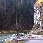 Polakowi Pieniny kojarzą się z Trzema Koronami, choć nie jest to najwyższy pieniński szczyt. Prym wiedzie Wysoka (Wysokie Skałki; 1050 m n.p.m.) w Pieninach Małych. Tym razem nie będę się rozpisywał o pasjonujących widokach z Trzech Koron, bo o tym uczą na lekcjach geografii. Chcę opisać czytelnikom Drogę Pienińska, położoną tuż przy granicy polsko-słowackiej, w zdecydowanej większości po stronie naszych południowych sąsiadów. Droga Pienińska (słow. Pieninska cesta) To trakt wiodący przez Przełom Pieniński ze Szczawnicy prawym brzegiem Dunajca do słowackiego Czerwonego Klasztoru. Pierwszy odcinek do Leśnego Potoku wybudował w latach 1870-75 Józef Szalaj, po jego śmierci budowę kontynuowała krakowska Akademia Umiejętności. Budowę, również po stronie węgierskiej (obecnie słowackiej), finansowano w całości ze środków polskich. W niektórych miejscach Dunajec tworzy tak ciasny wąwóz, że dla utworzenia przytulonej do skał wąskiej drogi konieczne było obciosywanie skał i budowa wysokich kamienno-betonowych nasypów tuż nad nurtem rzeki. Obecnie drogę przecina granica polsko-słowacka, przed otwarciem granic czynne było na niej turystyczne przejście graniczne. Droga Pienińska została unowocześniona i dostosowana do ruchu turystycznego. Droga jest zamknięta dla ruchu kołowego. Prowadzą nią szlaki turystyki pieszej i rowerowej. Efektowne widoki na przełomy Dunajca i spływające Dunajcem tratwy z turystami, szczególnie wczesną wiosną i późną jesienią, gdy widoków nie przesłaniają ulistnione drzewa. Licząca 9 km trasa jest doskonale przygotowana turystycznie: dobra nawierzchnia, estetycznie wykonane tablice informacyjne, liczne ławki i wiaty dla turystów, przystosowane źródełka z źródlaną wodą, wypożyczalnia rowerów i kajaków górskich, parkingi, bezpłatny wstęp do Pawilonu Pienińskiego Parku Narodowego.