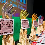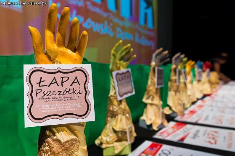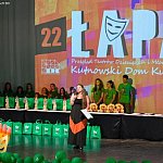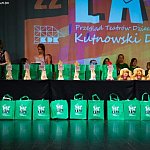 22. Przegląd Teatrów Dziecięcych „ŁAPA 2016” za nami. Podczas przeglądu w Kutnowskim Domu Kultury obradowało jury dziecięco-młodzieżowe i dorosłe. Patronat Honorowy nad przeglądem objął Prezydent Miasta Kutna. Nagrody ufundowane zostały przez Kutnowski Dom Kultury HOOP POLSKA. Oto wyniki. Jury dorosłe w składzie: Dominika Staniszewska - instruktor teatralny KDK - przewodnicząca Jury Jadwiga Rzetelska – instruktor teatralny KDK, organizator i pomysłodawca przeglądu Olga Czajkowska – Kulturoznawca, specjalizacja teatr- instruktor KDK Małgorzata Klekowicka – animator kultury, stażystka Marta Fijałkowska- instruktor KDK Wioleta Tuchorska uczestnik Teatru PUSZEK , Grupy Teatralnej "od jutra", obecnie instruktor KDK Jury dziecięco – młodzieżowe w składzie: Teatr Puszek, Weronika Szydłowska, Emilia Szydłowska, Julka Czekalska, Gabrysia Kucharczyk, Sabinka Kucharczyk Natalia Gens, Zosia Lenarczyk, Natalia Maćkowiak, Kaja Górska, Zosia Czekalska, Wiktoria Rączka, Nikola Raczka, Zosia Bregier, Asia Bregier, Magda Lipska, Zuzia Olejnik, Ania Adamowska, Albert Drabik, Maja Augustynowicz, Gabryś Łopata ,Tobiasz Drabik, Eryk Woźniak, Oliwia Banasiak Grupa Teatralna „od jutra” oraz STUDIO TEATRALNE ,,Oj’’ Justyna Galant, Magdalena Ulanowska, Alicja Matuszewska, Daria Przyłoga, Patryk Raczyński po obejrzeniu 21 spektakli konkursowych postanowiło przyznać następujące wyróżnienia indywidualne i nagrody: w I kategorii WYRÓŻNIENIA INDYWIDUALNE ufundowane przez KDK w postaci nagród rzeczowych dla: Postać DZIADKA ze spektaklu „PRZYDAŁBY SIĘ KTOŚ NA PRZYCZEPKĘ” z Przedszkola Miejskiego Nr 16 „Calineczka” Postać CZAROWNICY ze spektaklu „SZEWCZYK DRATEWKA” z Przedszkola Miejskiego Nr 17„Niezapominajka” w Kutnie od obu jury Postać SZEWCZYKA DRATEWKI ze spektaklu „SZEWCZYK DRATEWKA” z Przedszkola Miejskiego Nr 17„Niezapominajka” w Kutnie Postać BOCIANA ze spektaklu „NIEGRZECZNA ŻABA” z punktu przedszkolnego Miejskiego Nr 2 przy szkole nr 6 w Kutnie od obu jury