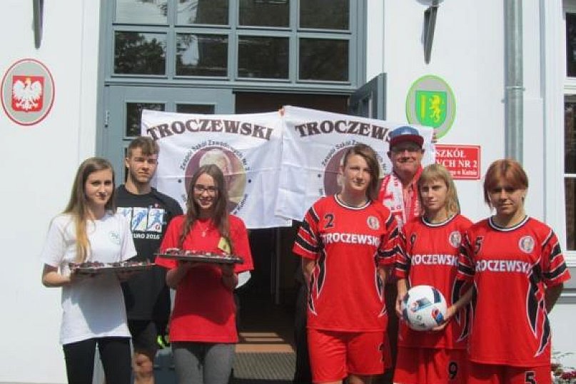Dziś oczy Kibiców zwrócone będą na Francję. Wszystko za sprawą rozpoczynających się Mistrzostw Europy w Piłce Nożnej 2016. Z tej okazji w Zespole Szkół Zawodowych Nr 2 im. dr. Antoniego Troczewskiego pojawił się sam Adam Nawałka, trener polskiej reprezentacji :-), który dokonał odprawy naszych uczniów wyruszających na ulicę Królewską z tacami zapełnionymi truskawką kaszubską. Dla niewtajemniczonych - jest to tradycyjny produkt z województwa pomorskiego. Truskawka ta jest dużo słodsza niż te uprawiane w innych regionach, na co ma wpływ specyficzny mikroklimat Pojezierza Kaszubskiego. Kaszebści malenie (kaszubskie truskawki) będą smakowali kibice w centrum Paryża nad Sekwaną, na Placu Concorde, Placu Inwalidów oraz w Ambasadzie RP. Niechże i mieszkańcy Kutna doświadczą smaku truskawek z okolicznych plantacji.
