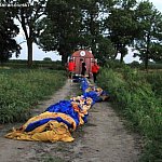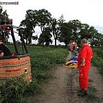 I wylądowali! Trudno pomyśleć jak lądowania wyglądały w XVIII wieku, kiedy balon był papierowy a kosz pleciony. Jak opisuje Marek Roleski z Lotniczej Ekspedycji Historycznej zbudowany przez nich balon unosi się w powietrzu na tej samej zasadzie co montgolfier, ale zamiast siana jest paliwo, a balon zbudowany jest z innego tworzywa niż papier. - Ekipa Roleskiego to doświadczeni lotnicy, ustanowili razem trzy rekordy życia - mówi Leszek Baranowski. - Latali nawet pod powierzchnią ziemi. Nie obawiałem się lądowania bo byłem w dobrych rękach. Ale adrenalina i zaskoczenie sposobu osiadania na polu będą niezapomniane.