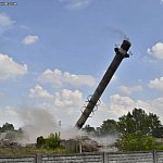 Dziś punktualnie o 13:00, po trzech sygnałach syren alarmowych, 40-metrowy komin starej kotłowni przy ulicy Szpitalnej wyleciał w powietrze. Ze względu na sąsiedztwo szpitala, osiedla mieszkalnego i drogi publicznej wykonane zostały odpowiednie wygrodzenia wraz z tablicami ostrzegawczymi oraz dokonano oznakowania stref na czas robót minerskich. Jak już wcześniej pisaliśmy w miejscu po rozebranej kotłowni powstanie oddział Wojewódzkiego Ośrodka Ruchu Drogowego.