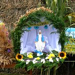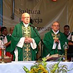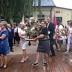 Momentami w ulewnym deszczu odbywały się w Leszczynku tradycyjne dożynki. W tym roku święto rolników z gminy Kutno miało wyjątkowy charakter, ponieważ połączone zostało z kilkoma bardzo ważnymi uroczystościami. Jesienna aura jednak nie odstraszyła mieszkańców gminy - trudno było znaleźć miejsce siedzące. Dożynki rozpoczęły się mszą świętą w intencji rolników z gminy Kutno. Oprawę muzyczną nabożeństwa zapewnił zespół Leszczynianki i kapela Okowita. Tuż przed mszą przedstawiciele sołectw zaprezentowali wieńce dożynkowe. Rolnikom za ich trud podziękował wójt gminy Kutno Jerzy Bryła. - Tegoroczne plony nie były imponujące. Aura nie rozpieszczała rolników - podkreślił Jerzy Bryła. - Chciałbym podziękować Wam za rolniczy trud i życzyć wszystkiego najlepszego. Wójt podziękował również sponsorom, dzięki którym udało się zorganizować święto plonów. Po oficjalnej ceremonii dożynkowej odbyło się uroczyste nadanie sztandaru gminie Kutno.