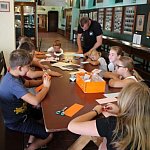 W dniach od 23 do 26 sierpnia odbyły się w Muzeum im. Jerzego Dunin-Borkowskiego, sierpniowe warsztaty wakacyjne. Zajęcia plastyczno-sprawnościowe potrwały cztery dni, a każdy dzień to dwie godziny zabaw i pracy. Pierwszy dzień zajęć 23 sierpnia zapoczątkowano plastyczną zabawą tworzenia własnego unikalnego robota, korzystając tylko z ekologicznych śmieci. Do dyspozycji były kartony po butach, tekturowe rurki oraz cały asortyment materiałów biurowych i plastycznych. Mając do dyspozycji wiele możliwości dzieci oraz młodzież tworzyły różnorodne konstrukcje przypominające zwierzęta lub roboty znane z filmów science-fiction. Ponieważ budowa robotów przebiegła niezwykle szybko i sprawnie resztę pozostałego czasu poświęcono tworzeniu origami czyli rzeczy z papieru. Drugi dzień 24 sierpnia proponował młodym uczestnikom zabawę w mały warsztat tkacza. Krosno, którego używali nasi mali tkacze to proste kartonowe pudełko przewleczone włóczką z dwóch stron tak aby otrzymać bazę przez którą puści się włóczkę i zacznie tkanie dla przykładu szalika. Pracochłonna lecz dające fantastyczne rezultaty zabawa potrwała całe dwie godziny.