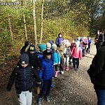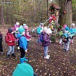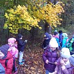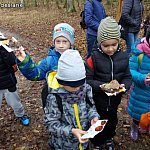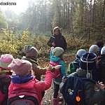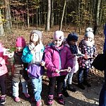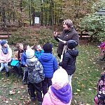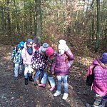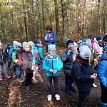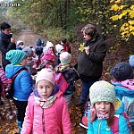 Wczoraj dzieci grupy: II "Misie" i IV "Biedronki" Przedszkola Miejskiego nr 15 udały się na wycieczkę do lasu w Raciborowie. Pogoda była piękna, a las uroczo mienił się pełnią jesiennych kolorów. W lesie dzieci przeszły ścieżką edukacyjną i obserwowały naturalny ekosystem świata roślin i zwierząt. Poznawały przyrodę patrząc, słuchając i dotykając. Rozpoznawały różne rodzaje drzew, liści, owoców, zobaczyły jak wyglądają rośliny zaatakowane przez szkodniki. Każdy starał się usłyszeć i zapamiętać jak najwięcej leśnych odgłosów. Po lesie oprowadzała je leśnik Katarzyna Popielarczyk, która przeprowadziła zajęcia edukacyjne, gdzie dzieci dowiedziały się, że las to źródło świeżego powietrza.