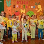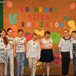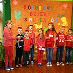 W ramach programu "Owoce w szkole" w Szkole Podstawowej im. Ireny Kosmowskiej zorganizowano 3 listopada "Kolorowy Dzień „Świeżaków". Program dnia przygotowały koordynatorzy programu A. Lasecka i A. Tańska. W każdej sali zrobiło się niezwykle kolorowo i radośnie, dzieci oraz wychowawczynie były ubrane w odpowiednim kolorze, który zdobił emblemat , nawiązujący do wylosowanych kolorów owoców i warzyw. Były owoce żółte, czerwone, filetowo -purpurowe, zielone, białe i pomarańczowe. Prezentacje strojów cieszyły się ogromnym uznaniem, modele i modelki w rytmie melodyjnych utworów o tematyce owocowo warzywnej przechadzali się po wybiegu. Dzieci z klas młodszych rozwiązywały rebusy , zagadki krzyżówki budowały piramidę zdrowego żywienia za pomocą zmysłów rozpoznawały smaki i zapachy owoców. Klasy IV- VI wykonały plakaty zachęcające do spożywania owoców z danej grupy kolorystycznej. Prezentacja multimedialna utrwaliła pozyskaną wiedzę. Przedsięwzięciom kulinarnym i edukacyjnym towarzyszył konkurs na „Jesiennego stworka z owoców i warzyw” oraz wycinane owoce i warzywa. Prezentacje piosenek i wierszy były dziełem uczniów i ich wychowawców. Wystawa owoców i warzyw dopełniła całości oprawy tego pięknego dnia, dzieci przyniosły maskotki w kształcie owoców i warzyw.