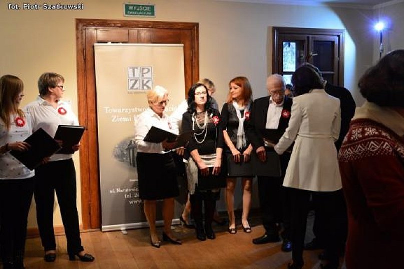 Cantabile pod dyrekcją Joanny Domagały śpiewa z taką charyzmą, że mieszkańcom Kutna, którzy licznie przybyli wczoraj do Dworku Modrzewiowego udzieliła się atmosfera ciepła, spokoju, a nawet podniosłości chwili… Więcej zdjęć Wspólne śpiewanie odbywało się dziś w Dworku nie pierwszy raz. Ci, którzy śpiewali z zespołem już wcześniej wiedzieli, że czeka ich interesujące popołudnie. Ci, którzy byli u nas pierwszy raz – nie zawiedli się. Pani Joanna Domagała wraz z 16 osobowym już zespołem znów zauroczyła nas pieśniami legionowymi, a także specjalnie na to popołudnie wybranymi utworami. Wśród gości w Dworku byli członkowie Chóru Nauczycielskiego Kamerton pod dyrekcją Macieja Szymańskiego, którzy świetnie wtórowali zespołowi Cantabile. [YT]https://youtu.be/jszX5owRADQ[/YT] - Prawie wszyscy przybyli do Dworku otrzymali śpiewniki i kotyliony z okazji Narodowego Święta Niepodległości. Dla niektórych brakło, za co przepraszamy - mówi Bożena Gajewska, prezes TPZK.