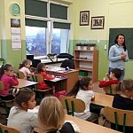W czwartek, Świetlica Szkolna „6. Baza” gościła w ramach programu edukacyjnego Mega Misja dziennikarkę Radia Victoria Renatę Jastrzębską. Spotkanie rozpoczęło się od przedstawienia gościa. Pani redaktor opowiedziała o swojej pracy i zawodzie jaki wykonuje. Dzieci dowiedziały się, że pani Renata jest dziennikarzem informacyjnym pracującym w lokalnym radiu. Dziennikarz to osoba, która podaje informacje rzetelne i zgodne z rzeczywistością. Nasz gość zadał dzieciom kilka pytań, na które uczniowie udzielili prawidłowych odpowiedzi np.: Czym różni się radio od telewizji? Dzieci wiedziały, że w telewizji jest obraz i dźwięk, natomiast w radiu mamy tylko sam dźwięk. Dowiedziały się, że informacje puszczane w radiu są aktualnościami i przekazywane zostają na bieżąco. - Dziennikarz radiowy powinien mieć dobry głos i dykcję - powiedziała pani redaktor. Uczniowie zadali mnóstwo pytań m.in.: W jakich godzinach pracuje radio? Ile lat pani pracuje w radiu? Czy praca dziennikarza jest łatwa? Czy praca dziennikarza jest dobrze płatna? Ile osób pracuje w Radiu Victoria? Czy mówienie do mikrofonu jest stresujące? Czy łatwo zdobyć informacje do nagrania materiału?