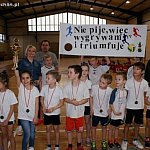 W czwartek 24 listopada w hali sportowej Zespołu Szkół Nr1w Żychlinie odbyła się Gminna Turniejada klas I-IV oraz Turniej Siatkówki Dziewcząt i Chłopców (kl. V i IV SP oraz kl. I Gimnazjum) – obydwa przedsięwzięcia sportowe rozegrane zostały o Puchar Burmistrza Gminny Żychlin. Organizatorem imprezy była Szkoła Podstawowa Nr 2 im. Jana Pawła II w Żychlinie. Patronat nad imprezą objął Burmistrz Gminy Żychlin Grzegorz Ambroziak oraz Gminna Komisja Rozwiązywania Problemów Alkoholowych, która ufundowała pamiątkowe puchary, medale, nagrody rzeczowe i słodkie upominki dla wszystkich uczestników. Zawody – dzięki życzliwości Dyrekcji Zespołu Szkół Nr 1 w Żychlinie – odbyły się w hali sportowej przy ul. Łukasińskiego 21. W zawodach turniejady wzięły udział 40 – sto osobowe reprezentacje Szkoły Podstawowej Nr 1 i Nr2 w Żychlinie oraz Szkoły Podstawowej w Grabowie , wspierane przez opiekunów, którzy przygotowywali swoich zawodników. Uczniowie rywalizowali w 12 konkurencjach które rozegrane zostały w czterech kategoriach wiekowych: uczniowie klas I, II, III oraz IV(4 dziewczynki i 4 chłopców). Natomiast w turnieju siatkarskim wzięło udział 48 uczestników (zespół liczył 4 zawodników plus 2 rezerwowych, zarówno w drużynach dziewcząt, jak i chłopców), reprezentowali oni szkoły: SP Nr 1 w Żychlinie, SP Nr 2 w Żychlinie, SP w Grabowie oraz pierwsze klasy Gimnazjum w Żychlinie. W trakcie turniejady rozstrzygnięto także konkurs na najlepszy transparent z hasłem przewodnim ,,Nie piję, więc triumfuję i wygrywam”. Zwycięzcą okazała się Szkoła Podstawowa Nr1 w Żychlinie w składzie: Mikołaj Banasiak, Mateusz Gwardęcki i Jan Mroziewicz.