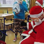Wczoraj uczniowie klasy Ia ze Szkoły Podstawowej nr 1 im. Tadeusza Kościuszki w Kutnie zamienili się w Mikołaje. Pod opieką wychowawców - Marleny Bajdy i Doroty Walczak odwiedzili uczniów klasy III ze Specjalnego Ośrodka Szkolno – Wychowawczego nr 1 im. Marii Konopnickiej w Kutnie. Podopieczni Małgorzaty Kaczmarek i Jolanty Koszewskiej bardzo ciepło przywitali swoich gości. Pierwszoklasiści przygotowali dla nich własnoręcznie wykonane kartki z życzeniami świątecznymi, oraz prezenty. Gospodarze natomiast poczęstowali wszystkich przepysznymi wypiekami i słodyczami. Miłą niespodzianką okazała się wizyta Świętego Mikołaja, który wysłuchał życzenia najmłodszych, wspólnie ze wszystkimi kolędował i rozdał dzieciom prezenty.