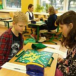 12 kwietnia, w przeddzień Światowego Dnia Scrabble®, miłośnicy tej gry rozegrali V Turniej o Tytuł Mistrza Szkoły Podstawowej nr 6 im. M. Skłodowskiej-Curie w Kutnie. W finale spotkało się 10 zawodników. Pięciorundowe potyczki zakończyły się zwycięstwem Kacpra Dałka, który uzyskał komplet punktów. Na drugim miejscu, z czterema wygranymi, uplasowała się Olga Baranowska. Na podium, „okupowanym” przez szóstoklasistów, stanął jeszcze Kamil Zarzycki (3 punkty). Tuż za nimi znaleźli się debiutujący trzecioklasiści – Jakub Krysiak i Grzegorz Zawadzki. Kolejne miejsca zajęli: Julia Tulińska, Dominik Witczak, Natalia Dębska, Martyna Witczak i Nikola Florczak. Najlepszym wręczono puchary. Wszyscy otrzymali dyplomy i nagrody w postaci gier planszowo-stolikowych o zróżnicowanej wartości. Wieczorem, po zakończeniu rozgrywek, uczniowie czekając na rodziców wypróbowali jedną z gier – „Gorący ziemniak”. Zabawa tak ich wciągnęła, że chętnie graliby jak dłużej.