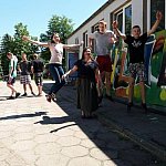 Wczoraj w DoMOStwie odbyły warsztaty ze Stawkiem - Sławomirem Krysiakiem/Fundacja Urban Forms. Młodzież oswajała się ze sprzętem, materiałami. Po 7 czerwca zabieramy się za ścianę kamienicy na Narutowicza w Żychlinie i malujemy mural. Kilka słów od Kamili Chomik-Wasiak (koordynatora projektu) - Przygotowania do muralu idą pełną parą. Ekipa projektowa Równać Szanse pn. "Historia w street art na Dobrzelińskiej" próbowała swoich sił przy malowaniu sprayami płyt kartonowo-gipsowych. Przy chilloutowej muzyce z głośników, na świeżym powietrzu i pod czujnym okiem Sławka młodzież uczyła się cieniować, nadawać trójwymiarowe kształty czcionkom i tworzyć pierwsze rysunki. Powstał wielki napis Żychlin, moodboard projektowy oraz liczne malowidła. Sławek był bardzo przekonywujący, świetnie motywował młodzież, budził walecznego ducha zespołu młodzieży z DoMOStwa, która realizuje wspólnie z Fundacją Urban Forms zadanie, czyli mural na ul. Narutowicza w Żychlinie. Dzięki funduszom projektowym Równać Szanse PAFW i PFDiM, dzięki PSB Mrówka Żychlin, Miastu i Gminie Żychlin wychowankowie mogli zakupić spraye, opłacić warsztaty i doskonalić swoje umiejętności. - Młodzi pozyskali już wielu partnerów na okoliczność malowania żychlińskiego muralu. Mural o treści historycznej, z wizerunkiem miasta i okolicy oraz legendarnym rycerzem Chwałem, budzi zainteresowanie mieszkańców Żychlina, ale i okolicy - dodaje pani Kamila. - Jest potrzebne wsparcie z uwagi na ogromne ilości farby, jakie będą wykorzystane podczas wykonania malowidła.