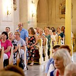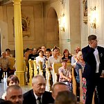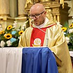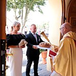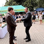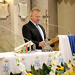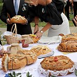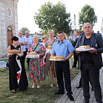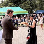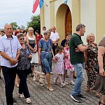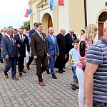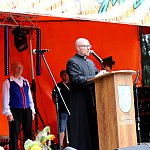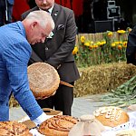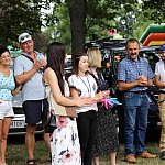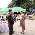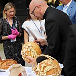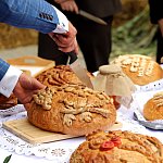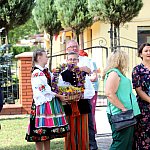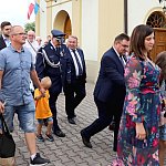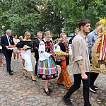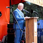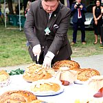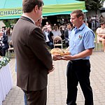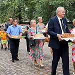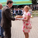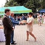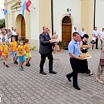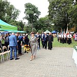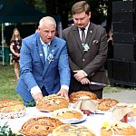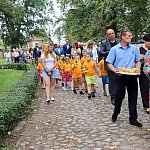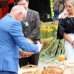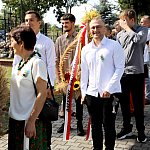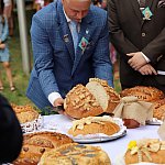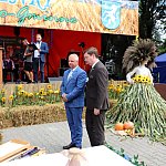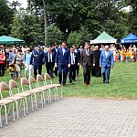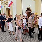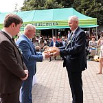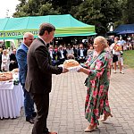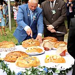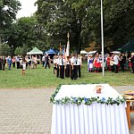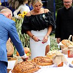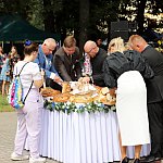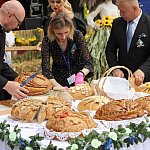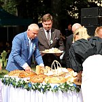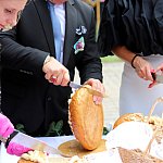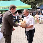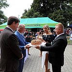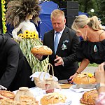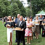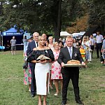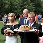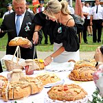 Powiatowo - Gminne Dożynki w Łaniętach rozpoczęły się uroczystą Mszą św. następnie korowód dożynkowy przeszedł do parku i tam odbyło się dzielenie chlebem, których dokonali Starosta Daniel Kowalik i Wójt Gminy Łanięta Tomasz Szczęsny.