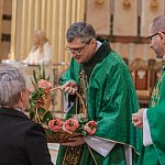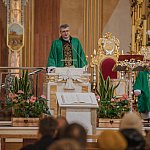 Podczas Mszy Świętej o godz. 12.00 homilię wygłosił ks. Sławomir Homoncik MIC, kustosz licheńskiego sanktuarium. W swoim słowie mówił o sile modlitwy i o wytrwałości w wierze. – „W każdym z nas toczy się walka między orłem a wężem” – przypomniał. – „Orzeł symbolizuje wszystko, co dobre i piękne, wąż zaś słabość i zniechęcenie. Wygra ten, którego częściej karmimy”. Ksiądz kustosz z wdzięcznością dodał również słowa uznania dla seniorów: