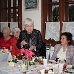 - Wędrowaliśmy w czasie od Elementarza pod pachą, śpiewając „ćwierkają wróbelki”, poprzez lata szkolne aż do matury, pytając „gdzie się podziały tamte prywatki” i zadymione, małe kawiarenki, w chwili, gdy zwariowany staruszek świat tańczył walca. Każdy z nas idzie swoją drogą, mijając liczne przystanki – smutku i zwątpienia, żalu i tęsknoty, ciesząc się każdą minutą radości - opowiadają seniorzy. - Nasi honorowi goście, których „młodość zatrzymała się na 80. to Panie: Marianna Cięgowska, Czesława Markiewicz, Teresa Markowska, Hanna Skawińska i Pan Janusz Ostrowski. Szczególne miejsce wśród Jubilatów zajęły - Pani Jadwiga Poterała, która skończyła 99 lat i 88-letnia Pani Barbara Maria Spera. Każda z wymienionych osób otrzymała nie tylko różę i laurkę z wierszem „Sztuka życia” (Gaja) przygotowaną przez grupę „Plastycy Van Gogh” sekcji plastycznej, ale także najnowsze wydanie poplenerowej publikacji „Barwy jesieni”.