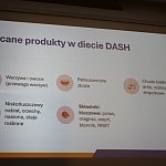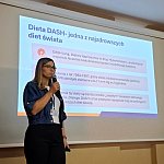 Zebrani seniorzy wysłuchali również przygotowanego cyklu wykładów. Wiele interesujących informacji uzyskaliśmy podczas prezentacji pt. „Dieta dla mózgu i serca – profilaktyka chorób cywilizacyjnych”. Dieta DASH to jedna z najzdrowszych diet świata. Ma ona wiele cech wspólnych i niewiele różnic ze znaną dietą śródziemnomorską. Stosowanie tych diet mających w swoim składzie dużą ilość warzyw i owoców, produktów zbożowych pełnoziarnistych, ryb, orzechów, chudego mięsa oraz ograniczenie soli przeciwdziała różnym jednostkom chorobowym. Dieta śródziemnomorska wpływa na zahamowanie procesów miażdżycowych, natomiast wdrożenie diety DASH zalecane jest w przypadku nadciśnienia tętniczego. Uzyskaliśmy wiele informacji, jakie produkty powinny znaleźć się w naszej diecie, które powinniśmy ograniczyć a jakie wykluczyć. Najważniejsze są jednak efekty jakie uzyskujemy, by zachować zdrowe serce i sprawny mózg.