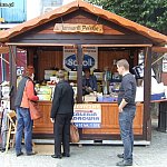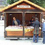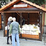Na Jarmarku Różanym w tym roku kupić można w zasadzie wszystko. Są stoiska z produktami regionalnymi z całej Polski, smakowite mięsa, kiełbasy, chleby i wypieki cukiernicze prosto zza wschodniej granicy, mega żele, podpiwek, browary, wódki Kurwica. Na przykład straznikom miejskim przypadły do gustu Mazurskie miody i pęta pachnącej z daleka kiełbasy. No cóż, męskie jadło. Z kolei panie oblegały stoiska ze srebrną biżuterią, obuwiem i odzieżą. Oczywiście najmłodsi mieszkańcy Kutna mogą nacieszyć oko i nadwyrężyć rodzicielskie portfele na stoiskach z zabawkami i gadżetami dla najmłodszych. Pomimo chłodnej aury na ulicy Królewskiej od Kościoła św. Wawrzyńca do Placu Marsz. J. Piłsudskiego przybywa systematycznie kutnian. Największym zainteresowaniem Jarmark Różany będzie się cieszył na pewno po godzinie 17.00 kiedy większość z nas rozpocznie weekendowy odpoczynek po tygodniu pracy. Zapraszamy. Jarmark Różany przygotował dla nas jeden z organizatorów 38 Święta Róży Agencja Rozwoju Regionu Kutnowskiego S.A.
