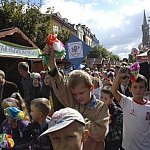 Królowa Róż i Królewna Różyczka przejechały dziś na motorach grupy motocyklowej Green Snakes Kutno w Korowodzie Róż ulicą Królewską aż do Placu Marsz. J. Piłsudskiego. Powitał je tam prezydent Zbigniew Burzyński, które wręczył im symbol Miasta Róż. W barwnym i dzięki motocyklistom oraz orkiestrze głośnym korowdzie, jak co roku wzięły udział dzieci ze szkół podstawowych i przedszkoli. Towarzyszyły im Różyczki, które rozdawały widokówki z nowym logiem miasta.