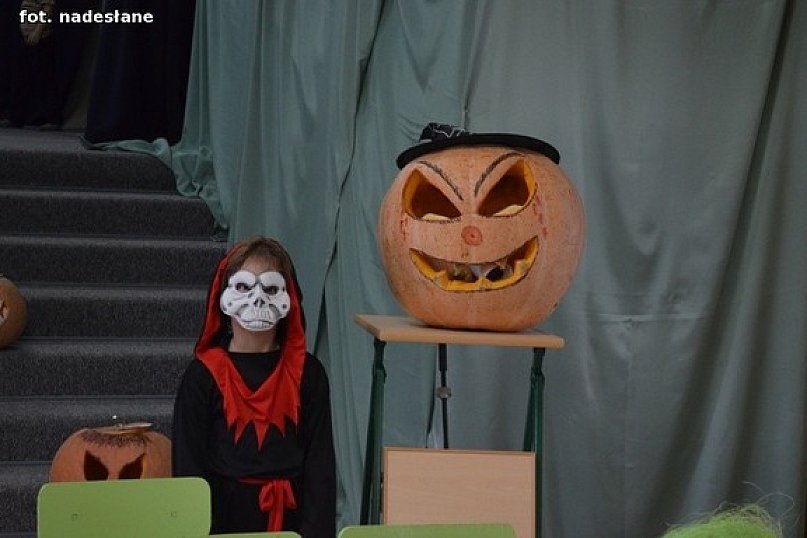 31 października w sali widowiskowej Szkoły Podstawowej nr 1 w Kutnie odbyła się po raz pierwszy zabawa dla dzieci z oddziałów przedszkolnych z okazji Święta Halloween. Biletem wstępu były dla wszystkich cukierki rozdawane przez uczniów klasy O e. Jak się okazało, pomysłów na straszne stroje nie tylko wśród uczniów, ale i nauczycieli nie zabrakło. Ciekawym akcentem tej zabawy był konkurs na najstraszniejszą dynię. Dzięki niemu cała sala miała swój magiczny i cieszący się wielkim zainteresowaniem wystrój. O sukcesie imprezy świadczyło też, m.in. pełne zaangażowanie rodziców w przygotowywaniu dyń i przekazaniu wielu wspaniałych nagród rzeczowych. Nie da się jednak ukryć, że na długo w pamięci wszystkich uczestników zabawy pozostanie „tajemnicza zjawa”, która z przerażeniem, a zarazem wielką radością została przywitana. Dzięki niej rozstrzygnięto konkurs na „najstraszniejszą dynię”. Wygrał go uczeń klasy O e Kacper Holc. Jeszcze raz gratulujemy!