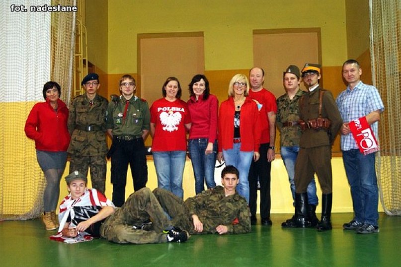 Często narzekamy, że My Polacy nie potrafimy się cieszyć. Zwłaszcza młodym ludziom nie podoba się obchodzenie świąt narodowych w zadumie i smutku. 11 listopada to nie tyko święto oddające hołd naszym przodkom, którzy walczyli o WOLNĄ POLSKĘ. To nie tylko coroczne wspominanie marszałka Józefa Piłsudskiego i I Brygady. To powód do dumy i radości. Dlatego w Zespole Szkół w Żychlinie uczniowie spróbowali wczuć się w skórę nastolatka, młodego człowieka, który obudził się 11 listopada 1918 roku. W niepodległej Polsce po 123 latach niewoli znów można było używać języka ojczystego, wywieszać polskie flagi. Jadąc na mecz, świętując EURO nikt nie wstydzi się barw narodowych, dlatego też w szkole nie zabrakło chętnych, by wziąć udział w szkolnym happeningu z okazji Święta Niepodległości – Wyraź Swoją Radość i Patriotyzm Strojem. Numery parzyste ubrały się na czerwono – nieparzyste na biało, nie zabrakło także przedstawicieli w mundurach harcerzy czy żołnierzy. Barwy narodowe przybrali także nauczyciele, dyrekcja i pracownicy szkoły.