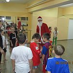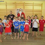 Wczoraj w grupie najmłodszych kickboxerów (7 do 10 lat) trenujących przy Młodzieżowym Domu Kultury w Kutnie miał miejsce wyjątkowy trening. Na początku zajęć odbyła się rozgrzewka ogólnorozwojowa z dużą ilością ćwiczeń szybkościowo - zwinnościowych i gibkościowych, a następnie najmłodsi zawodnicy pod okiem nauczyciela - trenera Aleksandra Grabowskiego uczyli się podstawowych elementów technicznych z zakresu semi i light contactu. Na koniec zajęć niespodziewanie na salę zawitał Święty Mikołaj, który obdarował wszystkie dzieci słodkimi upominkami. Wizyta niespodziewanego Gościa sprawiła wszystkim wiele radości.