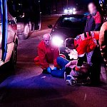 Trwają czynności policji i pogotowia na miejscu wypadku przed Kauflandem na ulicy Wyszyńskiego w Kutnie. W tej chwili jeden pas ruchu jest zablokowany dla kierowców. W wypadku przed godz. 19.00 brały udział 4 samochody bmw - pijany sprawca, mazda premacy, fiat panda, daewoo matiz. Został potrącony też człowiek. Kierujący pojazdem bmw 35-letni mężczyzna, bez stałego miejsca zameldowania, stracił kontrolę nad pojazdem, po czym spowodował potrącenie pieszego przechodzącego przez jezdnię 49-letniego mieszkańca Kutna, a następnie uderzył w stojące na drodze pojazdy fiat panda, mazdę pracy, oraz daewoo matiz. Potrącony pieszy doznał obrażeń ciała poprzez złamanie podudzia. Pozostał w szpitalu - informuje st. asp. Paweł Witczak z KPP. Kierujący bmw był w stanie nietrzeźwym. Miał ponad 1 promil alkoholu w organizmie. Został zatrzymany w policyjnym areszcie. Postępowanie w tej sprawie prowadzą kutnowscy policjanci.