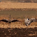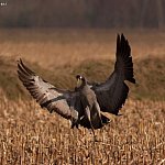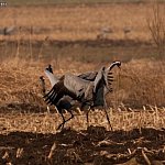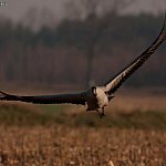 Nie widziałem ich jeszcze w tym roku na własne oczy, ale dotarła do mnie wiarygodna informacja, jakoby pojawiły się w Dolinie Bzury. Wprawdzie nie wiadomo, czy zimowały w Polsce (bo zdarza się to coraz częściej), czy już wróciły, ale jeśli zgodna z prawdą jest ta druga wersja, oznacza to, że na dobre zaczynają się ptasie powroty. Ponieważ są to jedne z pierwszych ptaków wracających po zimie do Polski, możemy śmiało powiedzieć, że wiosna za pasem! Dziś przyjrzyjmy im się nieco dokładniej, również ze względu na bardzo ciekawą biologię. Żurawie to najwyższe ptaki Europy, mierzą do 140 cm i ważą od 4 do 6 kilogramów. Ze względu na wyjątkowo piękne zachowania godowe, darzę je szczególną sympatią. Gody żurawi to spektakl przyrównywany do baletu (pas de deux), głównie ze względu bogactwo i delikatność ruchów. Samce rozkładają i składają skrzydła, poruszają głową w górę i w dół, podążając dostojne za samicami, często też popisują się przed nimi podrzucając kępy traw. Wszystko to robią z ogromną gracją. Warto zaznaczyć, że „tańce”, odbywają się także po sezonie lęgowym. Gdy żurawie pojawią się w swoim rewirze, informują o tym wszystkich dookoła. Głos, zwany klangorem, niesie się po okolicy na odległość paru kilometrów. Daleki dystans, jaki pokonuje głos żurawi, możliwy jest dzięki zwiniętej tchawicy. Pętla tchawicy działa dosłownie jak trąbką. Ptaki te najbliżej, możemy spotkać w Dolinie Bzury oraz w okolicach Strzelec, Sierakówka i Trębek. Najlepiej obserwować je z samochodu, jak spacerują po polach i łąkach. Gdy będziemy próbowali się do nich zbliżyć, najpewniej odlecą, wydobywając charakterystyczny głos ostrzegawczy.