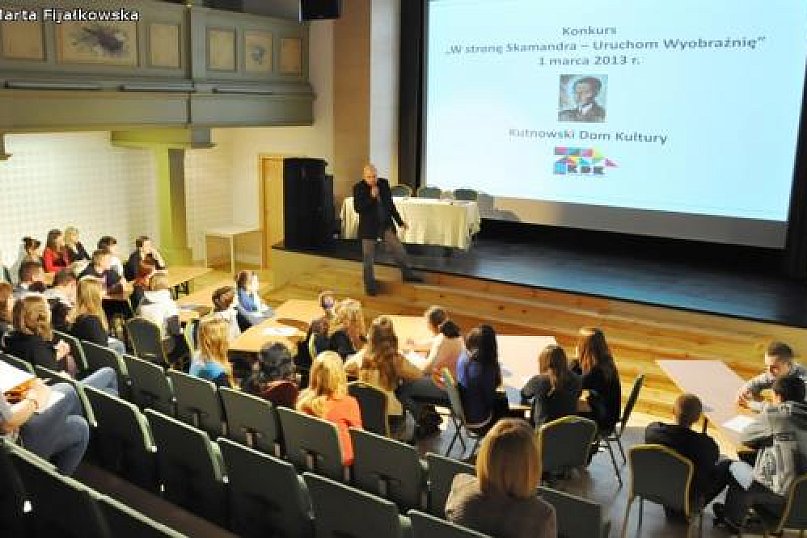 Z dużym zaintersowaniem spotkał się ogłoszony przez Kutnowski Dom Kultury Konurs „W stronę Skamandra - Uruchom Wyobraźnię”. Artur Fryz – pomysłodawca i organizator konkursu zaprosił do udziału w nim uczniów kutnowskich gimnazjów i szkół ponadgimnazjalnych. Dzięki zaangażowaniu wielu nauczycieli udało się w krótkim czasie zorganizować 15 drużyn (łącznie 44 uczestników), które postanowiły rywalizować w dziedzinie wyobraźni. W piątek, 1 marca o godzinie 17.00 rozpoczęły się zmagania prowadzone w atmosferze zabawy i wzajemnej sympatii. Wszak patronowali konkursowi poeci z jednej z znajbardziej optymistycznych grup w dziejach polskiej poezji – twórcy Skamandra: Kazimierz Wierzyński, Jan Lechoń, Jarosław Iwaszkiewicz, Julian Tuwim, Antoni Słonimski. W jury konkursu znaleźli się współcześni poeci: Piotr Grobliński z Łodzi, Kacper Płusa z Pabianic i wspomniany już Artur Fryz z Kutna. Zadaniem uczestników było napisanie tekstu poetyckiego przy użyciu ściśle określonych słów. Słowa te, jak się później okazało, pochodziły z wiersza Juliana Tuwima „Rzuciłbym to wszystko”. Oceniane były oryginalność, kreatywność i kultura języka. Wśród zespołów gimnazjalnych zwyciężyła trójka z Gimnazjum nr 1 im. Adama Mickiewicza, która przybrała nazwę STEFANIA, czyli Maja Tomczak z klasy IIf, Kinga Wyrzykowska z IIf i Sylwia Modlińska z IIIb. W kategorii szkół ponadgimnazjalnych triumfowała trójka z Zespołu Szkół nr 1 im. Stanisława Staszica, która wystąpiła pod nazwą TUWIMOWSKIE JULKI, czyli Ewelina Iwańska, Małgorzata Graczyk i Patrycja Galanciak z klasy III d LO. Specjalną nagrodę otrzymał Zespół Szkół nr 3 im. Władysława Grabskiego za wystawienie największej ilości drużyn.