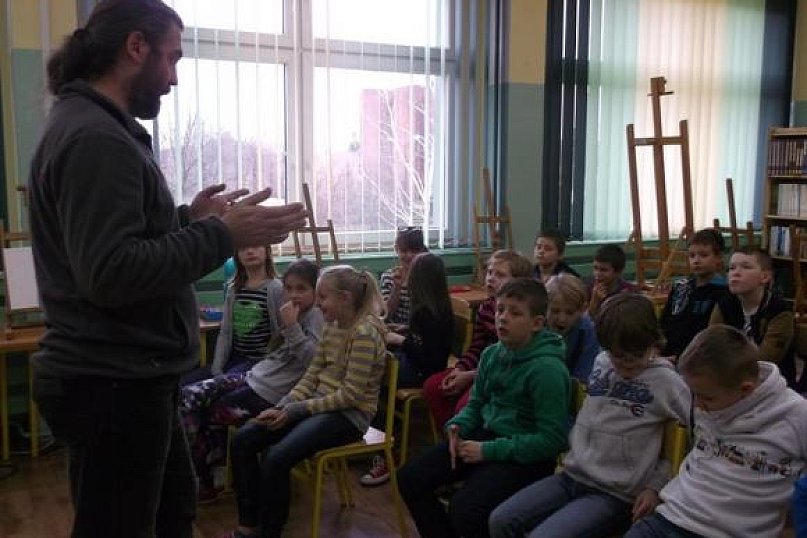 W poniedziałek w Szkole Podstawowej nr 1 im. T. Kościuszki w Kutnie w ramach realizacji grantu „Kutno miasto ludzi z pasją” uczniowie klas 3b i 2b spotkali się z Tomaszem Czyżewskim, malarzem, twórcą wierszy i wydarzeń poetyckich, performerem, założycielem i uczestnikiem grup artystycznych i społecznych. Spotkanie rozpoczęło się od serii pytań dotyczących twórczości i zainteresowań zaproszonego gościa. Następnie każdy uczeń mógł spróbować swoich sił w tworzeniu obrazu inspirowanego wyobraźnią. Dzieci malowały farbami plakatowymi na płótnie. Pan Tomasz kierował pracami uczniów udzielając fachowych rad i wskazówek. Spotkanie przygotowały Agnieszka Ciesielska i Joanna Traczyk.