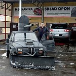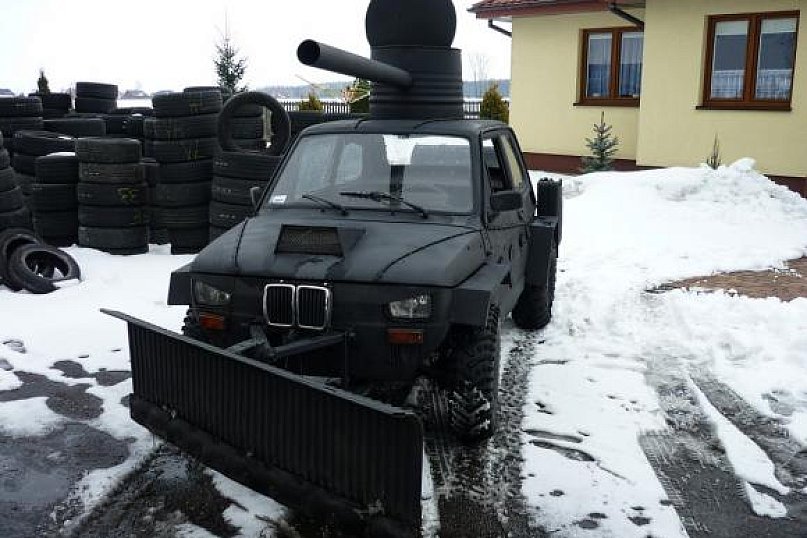 Jak wszyscy pamiętamy, wiosna zaskoczyła w tym roku drogowców (cóż, każdy chce mieć wolne w święta). Ale my nie z takimi rzeczami sobie radziliśmy. Prawie pół wieku gospodarki niedoborów i dekada panowania eurosocjalizmu rozwinęła w rodakach umiejętność kombinowania. W Nowej Wsi pod Kutnem pan Ireneusz Barylski wysłał na front walki z zimą bojowy wóz własnej konstrukcji. Potrzebny był mu pług do odśnieżania, więc jeszcze w zeszłym roku doczepił go do własnego fiata 126p. A potem, jak sam tłumaczy, "fantazja się uruchomiła", więc zaczął go dalej przerabiać. Na dachu pojawiła się lufa, aby pojazd z daleka rzucał się w oczy. Zabieg był skuteczny - wehikuł pokazano w Teleexpressie, konstruktora amatora odwiedziły z kamerą także TVN i Polsat. - Pomału, etapami, najpierw pług, potem koła, błotniki i na końcu ozdoby - opowiada Ireneusz Barylski. - Kiedy wystawiłem go dla żartu na Allegro, to było 300 tysięcy odsłon strony! Licytacja doszła od złotówki do 5 tysięcy złotych.